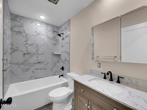 Better then new - completely rebuilt colonial on large deep lot - 5 bedrooms - 3 full baths - gorgeous home features foyer that leads to an open airy living space of living room - dining area and kitchen w/ pantry - french door overlooks fully fenced in rear yard with shed - 1st floor also has a bedroom and full bath - 2nd floor features 4 more bedrooms and 2 more full baths - master bedroom feature a huge walk-in closet & private full bath - 2 zone heat & 2 zone central air - hardwood flooring thru-out - hazlet offers high rated schools and is a great location for commuters with easy access to GSP & fast ferry to NYC - great deal on a great house