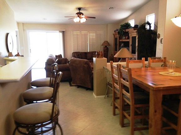 Relax and comfortably entertain friends and family in this beautiful home. Located on 18th green of Casa Blanca Golf Course, the expansive views are both breath-taking and calming. This well-maintained townhome has the sought-after Plan 4 layout with kitchen, large pantry, and breakfast bar opening to dining area, living room -- and mountain views. Awake in your spacious Master Bedroom with patio door that opens to every sunrise. Master bath has double sinks, tub and shower, separate toilet room, and extra-large walk in closet. Second bedroom, den/office (easily converted to third bedroom), and guest bath are located on opposite side of the home for privacy. The northeast facing covered patio offers delightful afternoon shade and plenty of space for cooking and entertaining. Yards are maintained by the HOA plus other benefits like 2 pools with hot tubs, discounted golf at Casa Blanca Golf Course, discounts at the Casa Blanca Casino. Be on vacation all year!