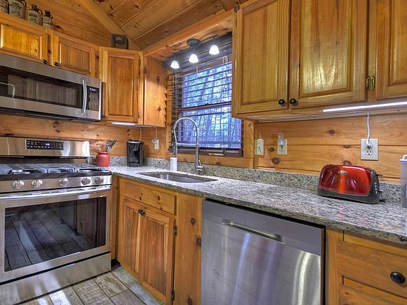 This one level living mountain retreat in immaculate condition is everything you've been looking for! Located in the beautiful Twin Creeks subdivision with over 180 feet of frontage on Whitzel Creek, this is the perfect location as it is centrally located between Blue Ridge and McCaysville. The home features 2 large, private suites each with their own full bath, stainless steel appliances, granite countertops, pantry, separate dining nook, open great room with wood-burning fireplace, cathedral ceilings, & beautiful hardwood floors throughout. Step outside to enjoy the sound of the rushing creek from your large, screened-in porch with winter covers for use all year long. 2 added bonuses are the storage shed plus another small, covered area built for storing wood.