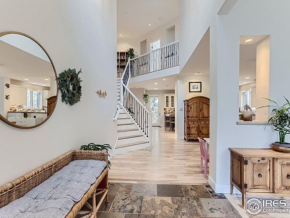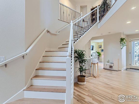 Expansive custom home situated in the sought-after Dakota Ridge/Carrie neighborhood boasting mountain views! This sunlit and airy home, characterized by its open floorplan, newly refinished wood floors, distinctive wallpaper, fresh paint and imported tile accents that exceed expectations. A culinary haven, the gourmet kitchen boasts a marble island, Wolf oven and gas range, separate wall oven, farmhouse sink, and custom tile. The generous primary suite with a sitting area has a sizable walk-in closet, a custom stone fireplace, a luxurious 5-piece bath, and a private patio with mountain views. Two additional spacious bedrooms, each with their own private balconies on the upper level are connected by a jack-and-jill bath. The finished basement provides ample space, featuring a large living room, fitness area, two extra bedrooms, a wet bar, and a full-size bath. The private backyard is a retreat with mature trees, raised garden beds, custom built exterior climbing wall, and a peaceful waterfall feature. This extraordinary home was showcased in LUXE and Art and Architecture! Just a brief stroll to Open Space, hiking/biking trails, and Wonderland Lake as well as NOBO restaurants or easily commute to downtown Boulder or Lyons/Estes Park. Don't miss the brand-new furnace.