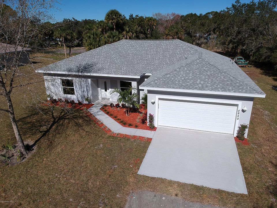 Brand new construction in Canaveral groves, MOVE IN READY! This Gorgeous 4 bedroom 3 bath home sits on an acre of land and boasts a plethora of features. 30 year architectural shingles, elegant vaulted and 9 ft ceilings, a modern open floor plan,, wood vinyl flooring, carpeted bedrooms, and granite counter tops throughout the home. Kitchen contains stainless steel appliances, soft close cabinets, drawers, and a kitchen island with lazy susan. Spacious master suite with walk in closet, double sinks, walk in shower, and soaking tub. Spacious secondary bedrooms. Interior laundry room and separate utility room / Walk in butlers pantry. New Construction