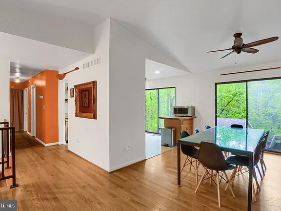 Welcome Home to this Beautiful 3 Bedroom, 2.5 Bath Home in White Hall. This secluded property has a lot to offer, gleaming hardwood floors (refinished 2019) throughout the main level, an open floor plan to make entertaining a breeze, and a primary en-suite bedroom. The lower level has a freshly remodeled family room that has walk out access to the back patio, new vinyl plank flooring (2022), a den or bonus room, updated half bath, recessed lighting, a laundry room, a separate storage area. The possibilities are endless. The 1.77 acre lot offers serene walking paths, and several out buildings/woodsheds. The separately metered 3+ car garage offers a car enthusiast dream come true, with a car lift, 3 garage doors with drive thru capabilities, bonus room for storage or office. The garage is also has electrical hookup for RV. This home has a lot to offer - some upgrades include NEW washer and dryer late 2019, NEW stove and hood 2020, NEW hot water tank 4/2023. - deck does need new decking and AC condensing unit is non-operational. Home and outbuildings are being sold as-is.