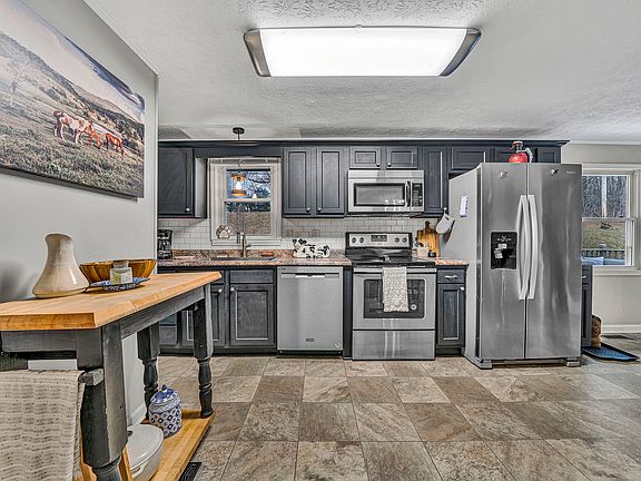 Charming furnished ranch-style home in peaceful Botetourt County, offering comfortable living in a convenient location. This 3-bedroom, 1-bath residence features 1000 sq. ft. of thoughtfully updated space, including modern stainless steel appliances, a heat pump for efficient heating and cooling, and fresh flooring throughout. Enjoy mountain views from the deck, perfect for relaxing or entertaining. The home sits on an acre of land. Move-in ready with all furnishings included ideal for renters seeking a turnkey home with country charm and easy access to local amenities.