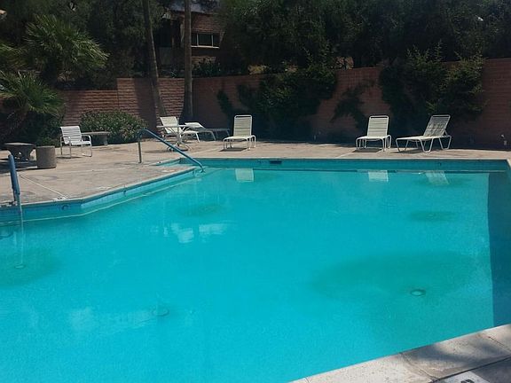 Private end unit in EXCELLENT foothills location with a walking path to shopping center and convenient to incredible restaurants & upscale shopping. Enjoy gorgeous pool, spa, tennis courts, rec center and shuffle board. All tile floors in this 2BR/2BA townhome with charming beehive fireplace in great room and freshly painted interior. Newer stove and counters in kitchen. Skylights provide natural light in both bathrooms. Amazing mountains can be viewed from eat in kitchen, guest bedroom and front of home. Full length covered patio, perfect for your potted plants and outdoor furniture. HOA fee includes roof, insurance, exterior paint, water, trash collection & sewer, pool, spa, tennis courts, rec center and shuffle board. A great price with these amenities and foothills location!