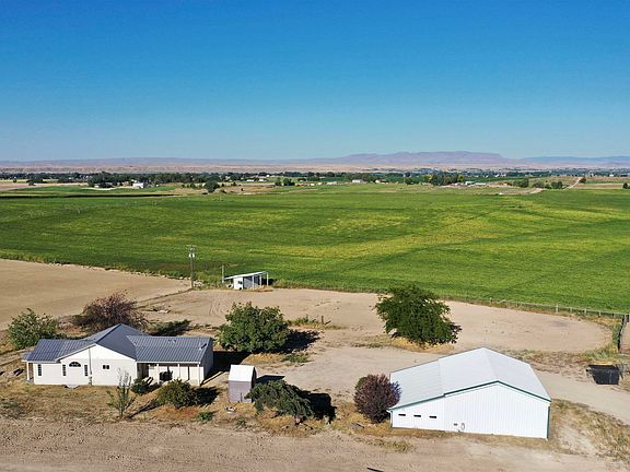 Come see this amazing country property w/ the ideal private setting. It's surrounded by farmland & gorgeous views of the mountains. The home is clean & updated. Lots of natural light makes it feel very warm & inviting. The kitchen is just right, w/ newer granite counter tops & appliances. There are two cozy fireplaces, one in the master suite on the main level. The oversized patio is perfect for entertaining which is plumbed for a gas BBQ. The 30x46 metal shop is solid, w/steel framing, heavy duty 8" insulated & wired for 220, 480 sf of living area & includes a refrigerator, stove, bathroom & pellet stove. R.V. parking setup W/50-amp breaker & dump line. The riding arena is in place just waiting for fencing. The adjacent building w/concrete pad has a tack rm, electricity. Livestock setup includes corrals, feedlot catch pen, head catch & an automatic water trough. Irrigation & land to raise your own hay. 1 additional dwelling unit permit available.