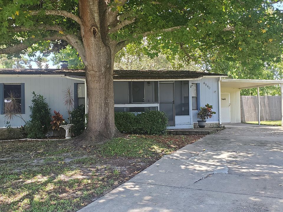 Cozy 3 bedroom, 2 bath home with 2 additional bonus rooms! Situated on a private and peaceful over-sized lot, this property includes an extended driveway, carport with storage area, mature oak trees, an above ground pool with custom deck and a fully fenced-in backyard. An adorable screened-in front porch welcomes you into the home along with a fireplace in the open living and kitchen area and a breakfast bar. This home also has a 1 year old AC and a large inside laundry room! Hurry, this one won't last long.