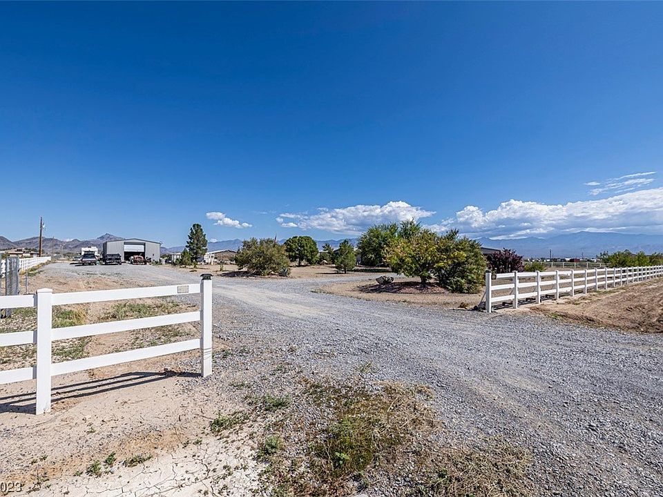 COUNTRY LIVING AT ITS BEST! WELCOME TO YOUR NEW HOME! ENJOY THE VIEWS OF MT CHARLESTON & PAHRUMP SUNRISES! SITTING ON APPROXIMATELY 5 ACRES* SPARKLING SALT WATER POOL TO ENJOY THOSE HOT DAYS* COVERED PATIO W/EXTERIOR LIGHTING & BUILTIN BBQ FOR ENTERTAINING* LOTS OF FRUIT, NUT, MATURE PINES & SHADED TREES THROUGHOUT* HUGE RV/SHOP-1,700 SQ FT BUILDING* 220 ELECTRIC* WINCH* LADDERS TO SECOND LEVEL* 3 RAIL WHITE VINYL FENCING & PERIMETER INVISIBLE DOG FENCE* HORSE BARN- 5 STALLS, ARENA, TACK ROOM & SWAMP COOLER* 1500 GALLON IRRIGATION STORAGE TANK* WATER WELL IS 2 YRS OLD W/PUMP HOUSE* SEPTIC RECENTLY PUMPED* NEWER ROOF* HUGE DOG RUN & LOTS OF ROOM FOR ALL YOUR ANIMALS! THIS BEAUTIFUL HOME IS OVER 2000 SQ FT! REMODELED KITCHEN THAT IS BRIGHT & AIRY* QUARTZ COUNTERTOPS* BREAKFAST BAR W/SEPARATE BAR SINK* INCLUDES NEWER STAINLESS-STEEL APPLIANCES* UPGRADED TILE T/O* WATER SOFTENER* NEW 4 TON HVAC SYSTEM! DETACHED 2 CAR GARAGE* & SO MUCH MORE! PROPERTIES LIKE THIS ARE FEW & FAR BETWEEN!