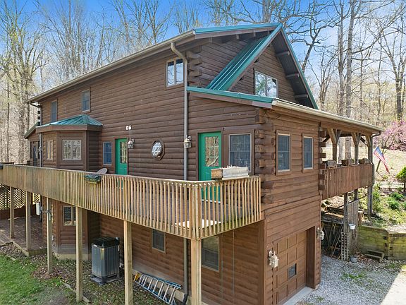Discover your private woodland retreat nestled between two ridges on a sprawling 15.93 acres in beautiful Martinsville. This stunning custom-built log home offers an enchanting escape with luxurious rustic charm & modern comforts. As you enter, the open floor plan reveals breathtaking hardwood floors that invite you into the heart & hearth of the home - a massive woodburning stone fireplace that anchors the great room with soaring vaulted ceilings. This home features 2 primary bedroom suites, one conveniently located on the main level and another on the upper floor along with a 3rd bedroom, all boasting ample space & privacy. Additionally, there are 2 full and 2 half baths, accomodating both family & guests with ease. Newly installed quartz countertops in the kitchen add to the beauty of this exquisite home. The full finished walk-out basement adds an extra layer of functionality & space, making it perfect for entertainment or relaxation. Creative spirits will find their muse in the bonus room currently used as an art studio. For those who relish outdoor living, the screened porch offers a serene spot for dining amidst nature, while the wrap-around porch provides panoramic views of the tranquil forest surrounding the property. Practical amenities have not been overlooked, w/a 2-car attached garage that includes workbench, a 20x40 pole barn and a quaint gazebo. Outdoor enthusiasts can easily enjoy expansive green spaces and recreational activities. Whether hosting lively social gatherings or indulging in the quiet solitude of the woods, this property is a true secluded sanctuary for those looking to enjoy the peace of nature without sacrificing quality & comfort.