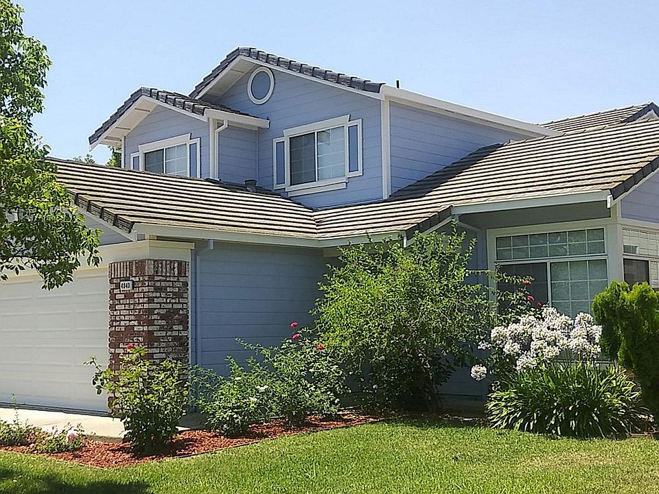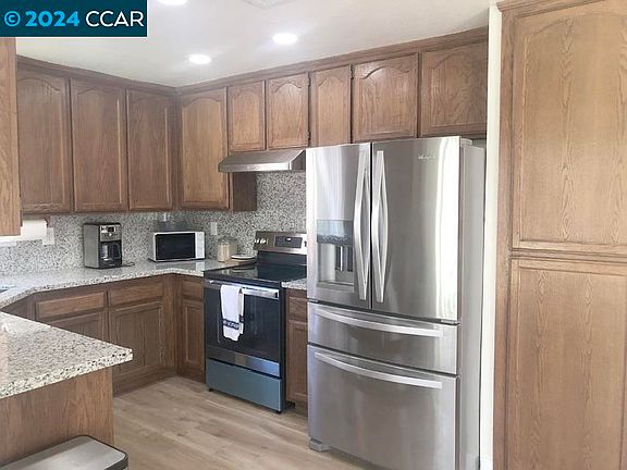 This is a bright and sunny home complemented by vaulted ceilings. Situated near the border with Brentwood. With four bedrooms and 2.5 bathrooms, including one convenient bedroom downstairs. Recent updates include an undated kitchen featuring granite counter tops and recessed lighting. The cozy wood-burning fireplace in the family room while the bathrooms are updated with new quartz counter tops. High-quality waterproof laminated flooring throughout, including the stairs, ensures durability and style. The exterior and interior of the property is newly painted and new fences on both sides and the backyard. Enjoy outdoor living year round with a patio overhang and a new corrugated polycarbonate roof panel cover perfect for relaxing or entertaining, rain or shine. Other updates including a new A/C unit, water heater, and kitchen appliances. This move-in-ready home offers the perfect blend of comfort, style, and convenience. Situated in a desirable neighborhood, this property is about five minutes from major retailers like Walmart, Lowe's, and Home Depot, as well as the Brentwood shopping area along Lone Tree Way. Easy access to HWY 4. Arrange a viewing & experience the beauty of this home yourself.