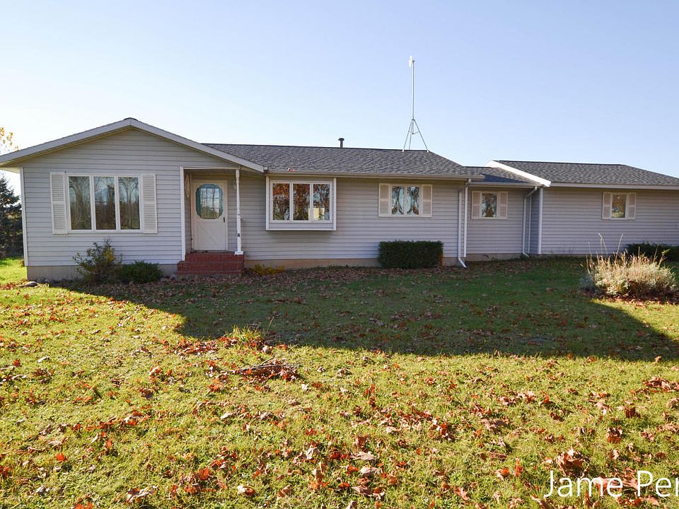 Private 10 acres with great ranch home awaits you. House features open floor plan, mud room, master suite and laminate floors. Three bedrooms and 2 baths on the main, while the full daylight basement is open and ready to be converted to your man cave...more bedrooms or additional living room. Brand new furnace installed to keep you toasty for years to come. Two stall attached garage and paved drive make living a breeze. Sit on your large back porch and look over you 10 acres as the sun sets . Land features woods, meadow and pond with all kind of deer, turkey, pheasant and more. Perfect for hunting or just getting lost for fun in the outdoors. Just add your finishing touches to make this home your perfect get away.