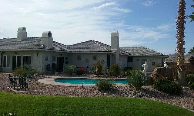 Views will take your breath away. Overlooks the Pahrump Valley, with amazing Mountain views surrounding. Pool & outdoor amenities enclosed with block wall. Plenty of room for Horses. All bedrooms feature patios, Master also has large Den/Sunroom, En suite Bath, Steam Shower, & Jetted Tub. Home also has a large Den, Living Room, & Family Room. 4 Car Garage, & Storage Shed. Truly a must see property!