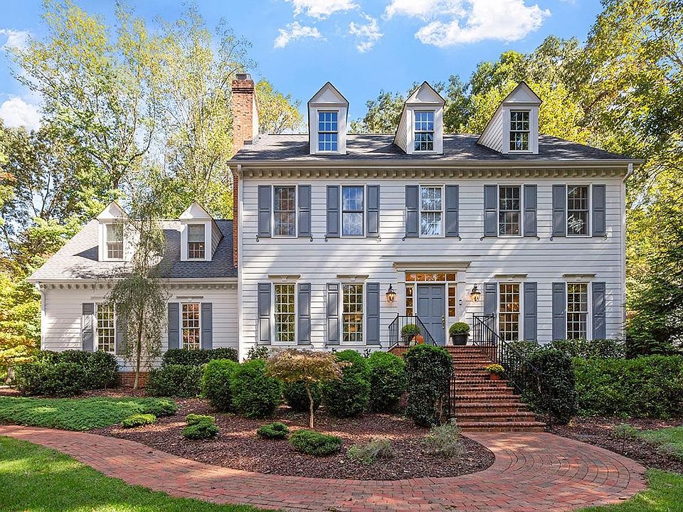 Located in Saddleridge neighborhood, this home has been beautifully maintained. Thibaut designer wallpaper in entry foyer, and updated light fixtures throughout the home. Buyers will appreciate the white kitchen with stainless appliances and gas range. Lovely Hardwood floors downstairs, primary bedroom and upstairs hallway. The updated primary bath features beautiful quartz counters, soaking tub, luxury shower and 2 separate walk-in closets. Bonus room on 2nd flr with built-in bookcases and a 2nd bonus room on 3rd floor and a spacious walk-in attic. Outdoors is a serene escape. Extensive landscaping with fenced yard, Screened porch, deck and concrete paver patio with firepit, shed, playset, garden area. Norwitz Tankless HWH. Neighborhood pool. Extra parking pad. Convenient to I-540 and Whole Foods. Epoxied garage floor, most windows and carpet on 2nd are newer!