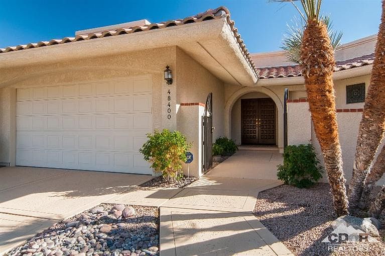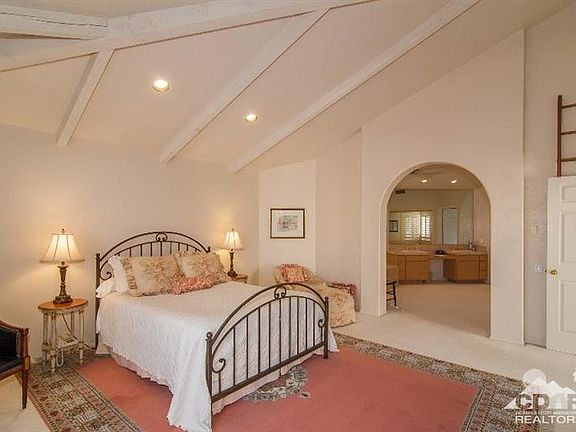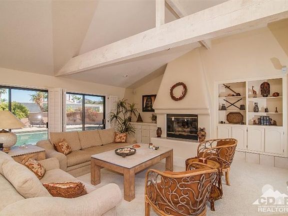 Reduced $90,000!Serious Seller Best Price in The Summit. The ultimate Desert Lifestyle in this architecturally custom home located in The Summit, South Palm Desert on an oversized lot with panoramic mountain vistas. The minute you enter the courtyard this home will embrace you. The warmth of the entrance and 12 foot high ceilings open to a large entertainment living room with authentic wood beams, wood plantation shutters , fireplace and built in cabinets. Unique and sophisticated this home features 3 bedrooms, 3.5 bathrooms and a private interior outside area in the middle of home for entertainment. The large master bedroom with exposed beams offers a dramatic setting. The master suite with double sinks , luxury spa tub, shower, and a walk in closet is everyone's dream Numerous glass sliding doors open to a backyard paradise perfect for entertaining or just relaxing with sun on the pool all day .The Summit South Palm Desert's best neighborhood offers low HOA fee of $99 per mont