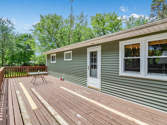 Rustic living at its finest! This three bedroom, one bathroom home is located on a beautiful .70 acre fenced lot. Nestled off the road surrounded by mature trees. Knotty pine interior offers the rustic feel. Well maintained interior with updated flooring. Beautiful kitchen cabinetry. Bathroom has a jetted tub. Large deck is perfect for entertaining. Extra large 2.5 car garage has plenty of space for toys! Garage also has propane tank for heat in the cold months. Walking distance to the Fox River. Seller is also offering a home warranty.