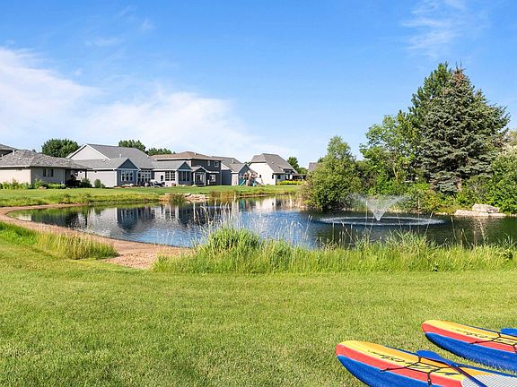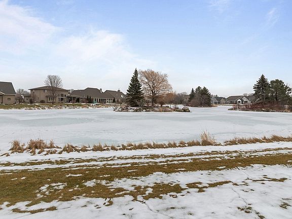 Elegance, style and quality exemplified. Griffin Builders built - Executive zero entry ranch style home located on the desirable Canvasback Circle overlooking the pond with fountains and nightly illuminated islands. Open concept design with hardwood floors. Chefs delight kitchen with oversized center island with stone countertop, Wolf range, Granite counters, tile backsplash & stainless steel appliances. Dreamy sun room off the dining space with morning sun exposure & views no matter the season. Living room with soaring high ceilings & gas fireplace. 1st floor primary suite with walk in shower & closet. 1st floor is completed with another bedroom, office space, and laundry. Finished basement with rec room, full bathroom, 3rd bedroom & additional space to finish or storage. LP Smart Siding.