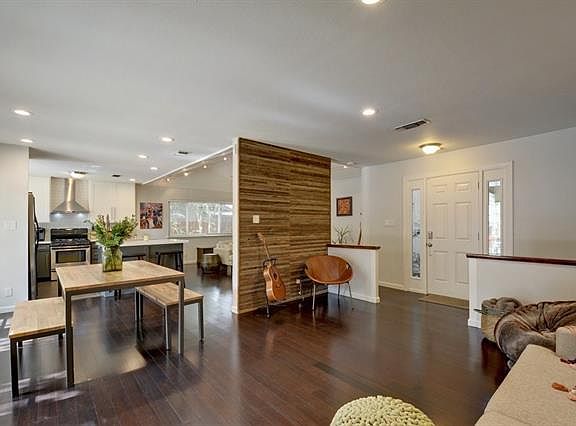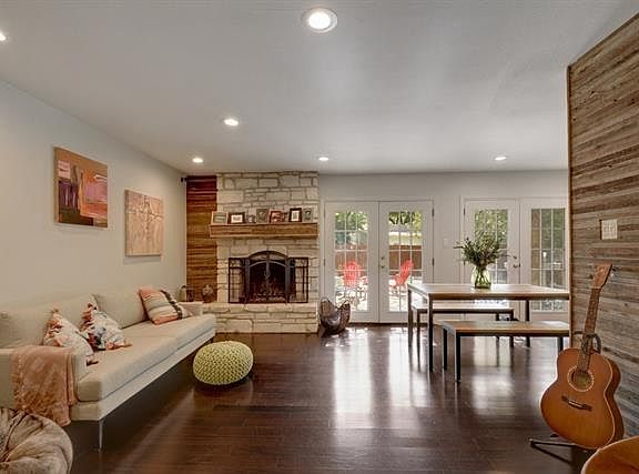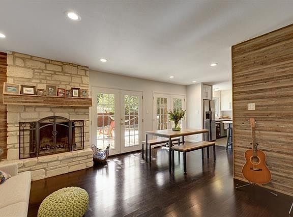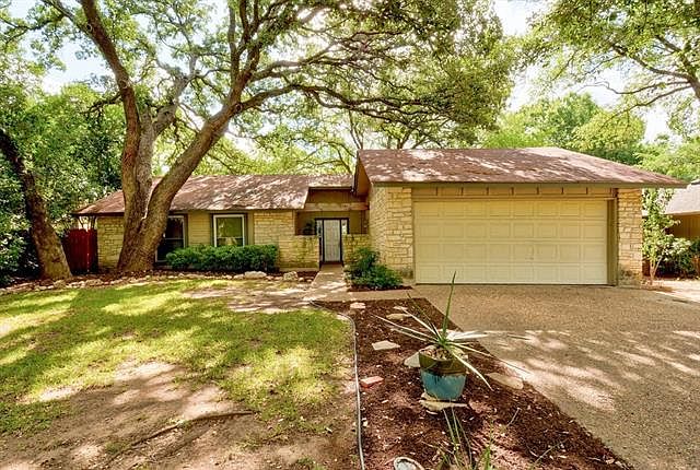 Beautifully updated Travis Country 1-story limestone home. Updated gourmet kitchen w/ quartz counters, stainless appliances & custom backsplash. Vaulted ceilings & open-concept layout. Limestone fireplace, custom woodwork on walls, wood floors, custom lighting & much more! French doors access the private & large backyard. Gorgeous landscaping, magnificent oaks & garden. Move-in-ready in highly sought after section of Travis Country!