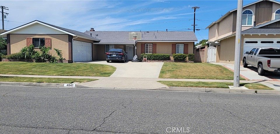 Welcome to 4841 Cartlen Drive, a beautifully maintained 3-bedroom, 2-bathroom home nestled on a peaceful street in Placentia. This 1,420 sq. ft. residence sits on a spacious 7,240 sq. ft. lot and offers a perfect blend of comfort, updates, and charm. Step inside to find tile flooring throughout, with new plush carpeting in two bedrooms for added warmth. The remodeled kitchen features classic maple cabinets, a newer dishwasher, and plenty of storage, making it a wonderful space for home cooking. Fresh interior paint enhances the bright and inviting atmosphere. Relax in the cozy family room, complete with a wood-burning fireplace, perfect for gatherings or quiet evenings. Upgraded dual-pane windows provide energy efficiency and natural light throughout the home, while the newer central heating & A/C ensure year-round comfort. Outside, enjoy a covered patio overlooking the backyard—a great space for entertaining or unwinding. The property backs to an elementary school yard, offering privacy with no direct rear neighbors.