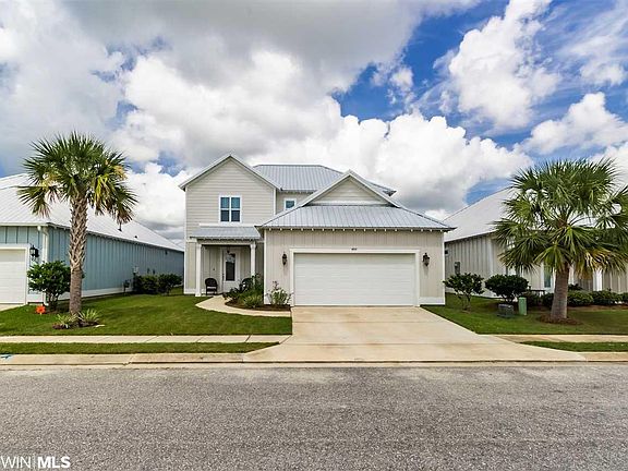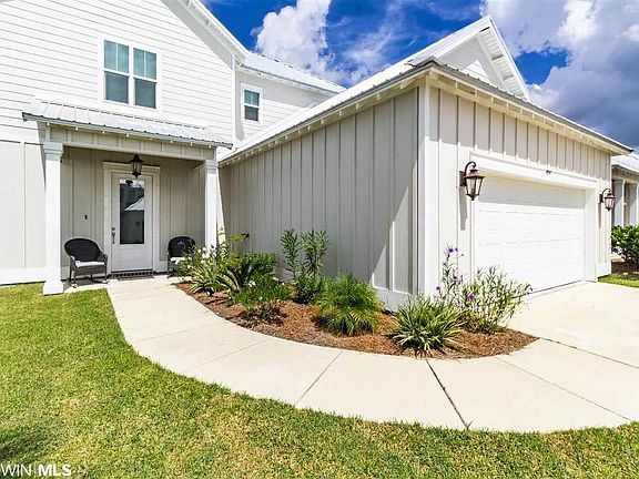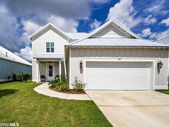 The UNICORN of Cypress Village: Custom Truland solid 2017 build - Rare Edgewater large floorpan. Nothing left like this Coastal Cottage in Orange Beach just steps from the Wharf Entertainment District in Cypress Village located on Canal Rd just minutes from the Foley Beach Express, Gulf Shores, and the sugar white sand beaches of the Gulf. This open floor plan has 10ft Ceilings, 8ft doors, granite counter tops, upgraded stainless steel appliances. Wood look ceramic tile in master bedroom, family room, dining room, foyer and office. Wood laminate upstairs. Metal roof, irrigation, large laundry room, huge pantry, large kitchen island/bar, recessed lighting, crown molding, custom fence & landscaping. Certified GOLD FORTIFICATION construction along with storm shutters. Subdivision has grilling area, zero entry pool, water slide and a LAZY RIVER to relax on.