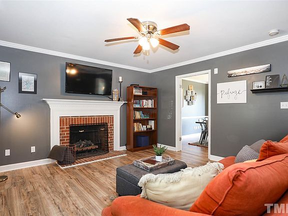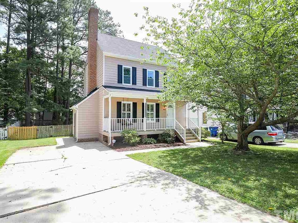 OFFER ACCEPTED! Come quick to see this incredible, updated home in the ideal location just north of I540 and Capital! Quick access to everywhere :) Charm begins as soon as you arrive! Covered front porch with swing welcomes you. Enter the large living room with fireplace. Beautiful updates include: granite countertops in the kitchen; wood laminate and tile flooring, updated vanities, and more! 3 Bedrooms PLUS finished space on 3rd floor. Enjoy dinner on the deck overlooking nice fenced backyard.