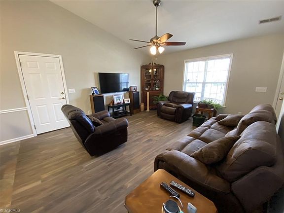 Just Painted one level w/ open flr. plan. Vaulted Ceiling in Great Room. Replaced cabinets & vanity. Granite and replaced Dishwasher. Eating area opens to covered porch. Nice size bedrooms and closet space. Walk in closet in primary bdrm, w/ walk in large tile shower w/ seat. Entire home w/newer tiled plank floors except hall bath. No carpet! Popular neighborhood. Won't last long! Sellers can't move til 5/31/2020 . No showings after 4 PM.