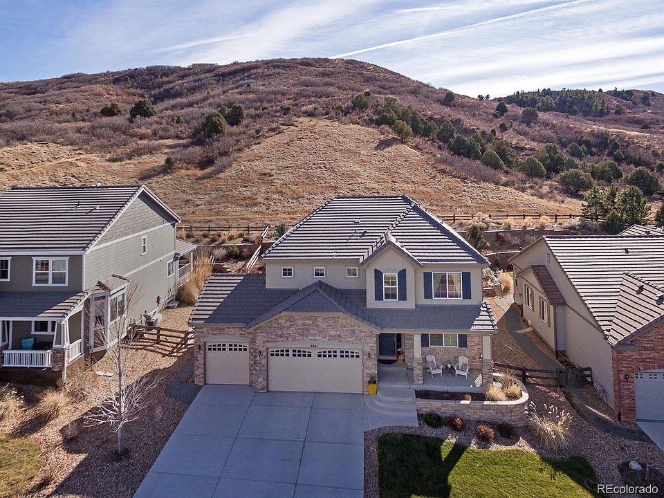 SHOWINGS BEGIN ON FRIDAY, NOVEMBER 20TH AT 3:00 p.m. Come home to Colorado living. Located in the peaceful, Briscoe Ranch neighborhood of The Meadows with breathtaking Front Range views, this Richmond American home provides the lifestyle you desire. When this house was built in 2013, over $100,000 in design center upgrades and lot premiums were invested. Upgrades include: extended kitchen, granite, Corian, carpeting, hardwoods, coffered ceiling, oversized garage, stamped concrete patio and more. Richly grained, low maintenance hardwood flooring extends through the main level. Quality abounds in the gourmet kitchen featuring: gas cooktop, double oven, stainless appliances, granite counters, and 42 painted maple cabinets with crown molding. Flow from the kitchen to the private patio and yard equipped with play set, garden with drip system and peaceful vistas. Or, take in the mountain views from the charming front porch. The floor plan allows for flexibility in living. The Master retreat has a 5 piece bath, custom walk-in closet and views of the open space which adjoins the lot. Three additional bedrooms (one en suite opening up the possibility of multi-generational living options) and a generous laundry room complete the second floor. The basement provides more living options with an oversized family room, partially finished play area and an unfinished storage area with bathroom rough-in ready for your personal touch. Backing to the 370 acre Ridgeline Open Space with hiking and biking trails, this low traffic area in the SW corner of The Meadows provides an authentic Colorado experience.