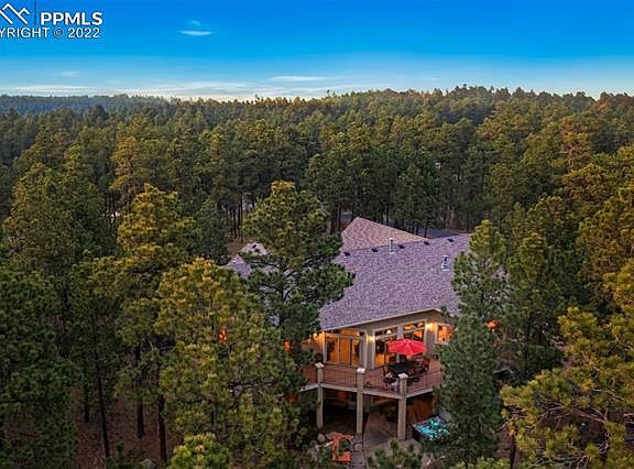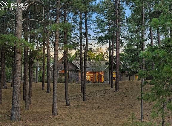 Gorgeous ranch style home on 4.18 acres in the very desirable gated community of High Forest Ranch* Beautifully upgraded home quietly tucked in the pines with views of the rock formations on the lot* 3 fireplaces* Alder cabinets* Glowing wood floors* Island kitchen with granite counters and stainless appliances & large eating nook or relaxation area* Master suite with large 5 piece bath, high end walk in closet, fireplace & deck* Inviting formal dining that is open to the great room* Large windows frame the great room with a fireplace and walk out to the covered deck* Main level office with French doors and large windows* Finished walk out basement with wet bar, media area & screen for movies, pool table and walks out to a patio with hot tub and outdoor kitchen* Basement windows are above grade for natural light in the bedrooms* Beautiful landscaping with a flowing stream water feature & pond* A welcoming covered front porch/patio* Open and bright floor plan* Attractive stone and stucco exterior* Oversized 4 car garage with large wood storage cabinets and workshop* Close to Flying Horse Club, Golf, restaurants, shopping, Denver, Colorado Springs and Castle Rock* The High Forest Ranch Community offers miles of walking trails, tennis/basketball, 2 fishing ponds, a grand community lodge, many acres of greenbelt to enjoy within the gated area. A wonderful place to call home! Be sure to see the 3D video in the MLS too!