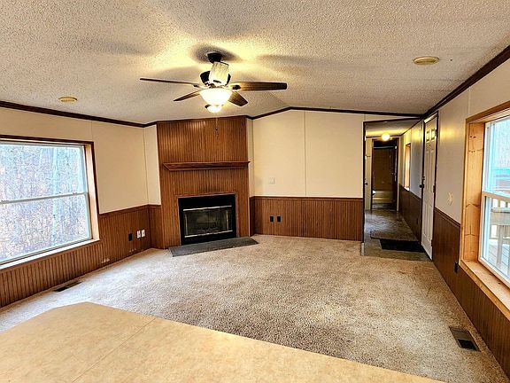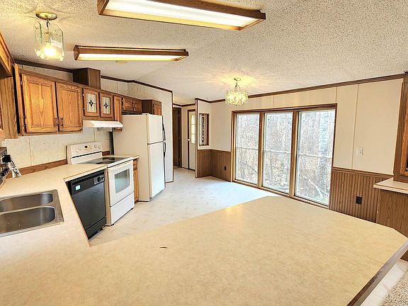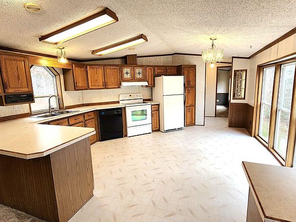 Location, Location! Take a look at this wooded 1.78 acre property just minutes from Moose lake for all of your conveniences, Sand lake and just a block from Coffee Lake. This 1996 mobile home is connected to city sewer, natural gas and has its own well. Inside you'll find a huge open kitchen with tons of natural light and a large living room with a wood burning fireplace. On one end of the home you'll find a great sized primary suite with walk-in closet and 4 piece private bathroom. The other end features 2 more bedrooms and a full bathroom. This home is sitting on a 6" slab and is tied down with tornado straps. Outside you'll find a large garage with plenty of space for toys and tools plus a 10x30 carport attached to the garage. The home and yard are situated just right for seclusion and privacy on one of the largest lots in the neighborhood! Freshly laid and leveled driveway in October 2022 and the yard had new black dirt and was seeded over the summer.