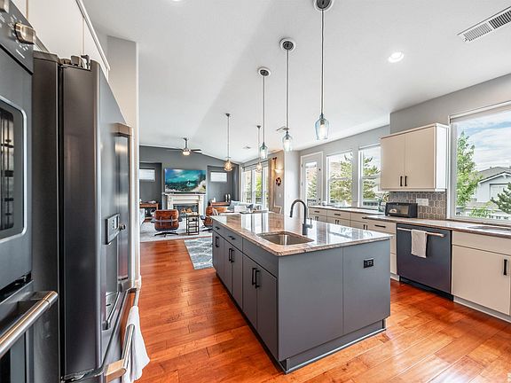 Discover this stunning property with just under 3,300 sq. ft. of luxurious living space. The layout features a spacious open floor plan with a daylight walkout basement. The heart of this residence is the remodeled kitchen, featuring modern finishes and ample space for cooking and entertaining. The primary suite is a true retreat, with a remodeled bathroom showcasing exquisite tile work, a standalone tub, and a generously sized closet with custom blackout blinds., The additional bedrooms are equally impressive, including one with a Murphy bed that stays with the home, offering flexibility for guests or a home office. Step outside to a low-maintenance yard, with paver patios and a beautiful deck equipped with a BBQ that is stubbed to the gas line. This area is perfect for relaxing or entertaining. The large laundry room includes a sink, cabinets, and a bonus storage area. Enjoy beautiful hardwood floors and elegant crown molding throughout the home, along with many other thoughtful details. The garage even features epoxy floors. Don’t miss the opportunity to own this exceptional property!