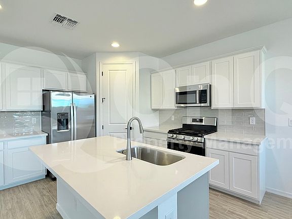 1,381 SQ FT! 3 bedroom, 2 bath single-story home on a 4,000 SQ FT lot. The kitchen includes a breakfast bar, pantry, and comes fully equipped with a dishwasher, microwave, oven, refrigerator, and washer and dryer. The living room offers a comfortable layout with ceiling fans and window blinds for added comfort. The primary bedroom features a walk-in closet and ensuite bathroom. Two additional bedrooms share a full guest bath. The laundry room includes both washer and dryer units and additional storage space. A 2-car garage with a garage door opener provides secure parking. The backyard features a covered patio, perfect for outdoor relaxation. Located in an HOA community, this home also includes a security system and central air conditioning for year-round comfort.