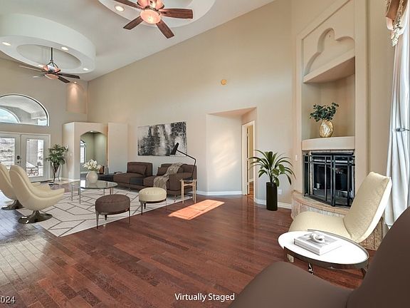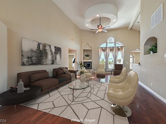 An exceptional opportunity to own this stunning single-story custom home on nearly an acre. Featuring 3 bedrooms, 3 baths, and an open floor plan with soaring cathedral ceilings. The primary suite offers a luxurious en-suite bath with a jetted tub, skylight, and 2 walk-in closets. A spacious kitchen with granite countertops and ample storage opens to living areas filled with natural light from tall windows showcasing mountain views and a covered outdoor kitchen. The gated property includes RV hookups, an electric gate, and plenty of parking. Don’t miss this rare find!