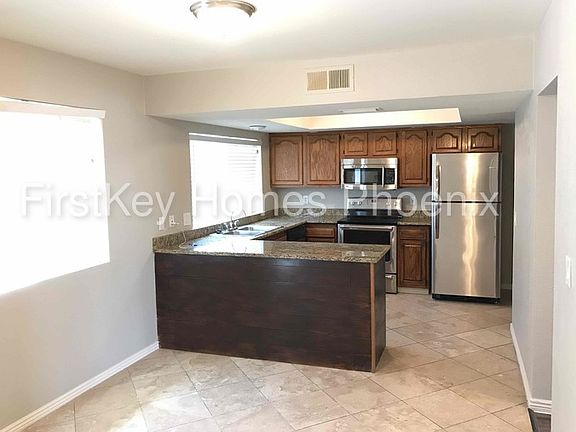 This 4 bedroom 2 bath, 1,752 sf home is located in Glendale, AZ. This home features tiled floors and plush carpeting in each bedroom, kitchen with stainless steel appliances, dining area and 2 car garage. Private back patio with fully fenced in yard, great for entertaining. This home is professionally managed by FirstKey Homes. Call our National Leasing Center at 844.395.3959 for more information on this home or for assistance with scheduling a self-tour. Apply for this home or schedule your own Self-Tour at www.firstkeyhomes.com. Up to three pets are allowed per home; pet fees may vary depending on market, Homeowner's Association, or local ordinances. Service animals will not incur pet fees and will be verified with documentation. Please ask about breed restrictions. Rents are subject to change at any time. Arizona residents may be subject to local taxes and processing fees. This property allows self guided viewing without an appointment. Contact for details.