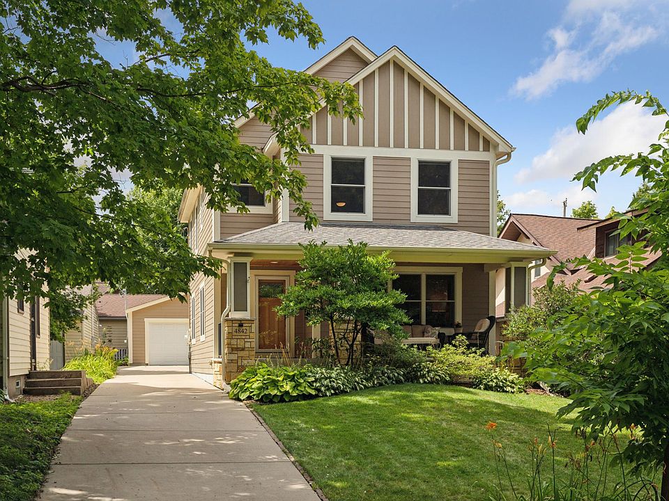 neighborhood just steps from Minnehaha Creek & Falls! Come inside to feel the modern warmth of solid hardwood floors and architecturally distinct Mission-style woodwork including beautiful custom kitchen cabinetry, solid-panel doors, and trim throughout! You will feel the quality of this home and enjoy new James Hardie siding on most of the home, new carpet, newer appliances & Rheem water heater. Savor your morning coffee or tea on the cozy front porch and close the day on the backyard paver patio with an intimate fire. The basement is ready for your finishing touches of another bedroom, bathroom, and family room or leave it as-is for an ideal workout space & dry storage. Enter from the striking and durable concrete driveway to park in the garage ready to be home for an EV. See 3D Virtual Tour and Supplements for more information & just some of the countless neighborhood amenities!