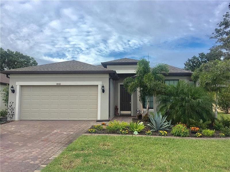 Paradise Found! Take up residence at this practically brand new construction 3/2/2 Den home in Crossing Creek - a unique enclave of highly desirable upscale homes conveniently located in the heart of Manatee County! Brick paver drive & walkway leads up to a grand foyer entrance with ceramic tile floors laid on the diagonal! Volume ceilings, crown moldings, oversized interior doors, granite island kitchen with custom cabinetry and tons of counterspace, as well as an extended 2 car garage (3 feet larger) sets the stage! Split plan with twin guest rooms & bath to the front, and master suite/bath with oversized walk-in closet to the rear. Access to your own gorgeous private brick paver patio lanai with heated in-ground pool oasis awaits you through a set of upgraded hurricane resistant glass sliding doors! This home even offers it all - even an exclusive aluminum fenced dog run to the side! This is truly Florida living at it's best! Located near major shopping and entertainment venues, including the new UTC Mall, Lowes Creekwood Shopping Center, Publix, Ellenton Outlet Mall, and only a short distance to the world class beaches of Siesta, Longboat, Lido, and Anna Maria! Everything you need to make this your own personal luxury retreat! Buy now and experience you own tropical sunsets in paradise!