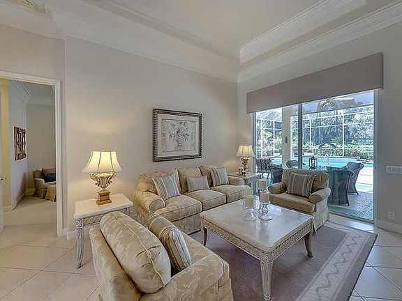 This immaculate home has 4 Bedrooms, 3 Baths, plus a den, and the most spectacular golf view, of the 15th green, from all of the major rooms. Enjoy the view and the sun from the spacious lanai, with its sparkling gas heated pool, with a tranquilizing fountain, as you BBQ, with the natural gas grill. The home is located on a lushly landscaped oversized lot. This gorgeous, light and bright home features: a lovely etched glass French door entry; crown moldings; a lovely, neutral decor with tray ceilings; easy care ceramic tile flooring; surround sound speakers; two potential offices/dens, with one being the 4th bedroom; a deluxe chef's kitchen, with natural gas cooking, an inviting cafe area and a large breakfast bar, for casual dining, sand color cabinetry, with a tile backsplash, a sizeable appliance garage and Corian countertops; a large elegant master suite, with two closets, a sitting area, a door to the lanai, a big shower and a soothing hydro-massage soaking tub; a separate dining room with an accent alcove; an extremely spacious 3.5 car garage, with storage; Two AC units, with the large major unit having been replaced; Pella windows and double paned doors, for energy efficiency; tubes in the wall pest control. The active lifestyle, in Rosdale offers an optional membership for the semi-private golf and tennis country club, with its work-out room and the heated junior olympic pool. Great friendly neighbors make this community the best place to call home! Don't miss this jewel!! Furniture negotiable.