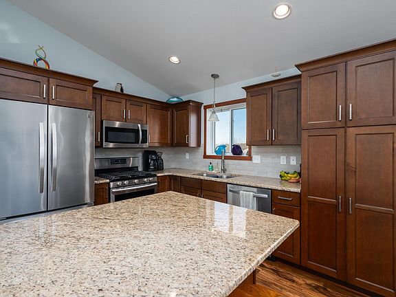 Welcome home! This 4 bed 3 full bath home features granite countertops in the kitchen, oversize center island, and upgraded bathroom countertops. The master suite boasts a large walk-in closet and heated bathroom floor, perfect for those cold MN winters. Bali cellular shades are installed on both floors and those in the upper level feature cordless “bottom up and top down” technology to optimize privacy and sunlight.  Nestled on a quiet culdesac road, the home is still close to downtown Rochester with easy access to Mayo Clinic, shopping, Hwy 52, Hwy 14, and the Douglas Trail. The deck has Trex composite flooring and is a perfect place to relax or grill. The basement walks out onto a patio to the partially fenced backyard where gardeners will enjoy the large raised bed garden and established concord grape vines.