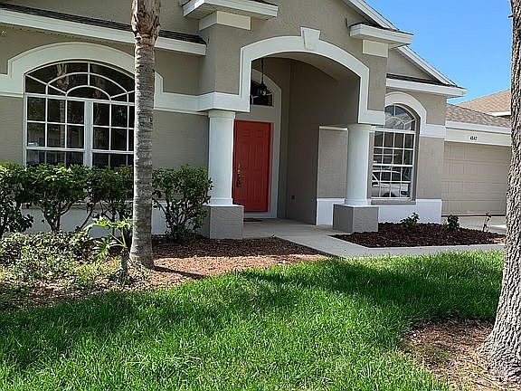 Sunny, Lofty open spaces that just finished a total renovation in the last month. From the new roof (with wind mitigation paperwork) to beautiful new paint in and out! A new lawn has been put in and extensive yard work has been done. You will enjoy the ease of in-ground sprinklers, new timers for the sprinklers and pool pump Decorator chosen finishes on the walls, floors, new granite, faucets, sinks, even the doorknobs, and toilet seats have been upgraded. The huge open kitchen boasts a large closet pantry, BRAND NEW four-piece (fingerprint resistant stainless ) appliance set with convection oven ( all top of the line LG ). You will love the kitchen and new HUGE walk-in closet in the master suite. You will love the large laundry room, and so much more. This can easily show as a 5 bedroom/3 bath home. It is built for the family needing space and for those that like to entertain. A great layout and easy purchase.