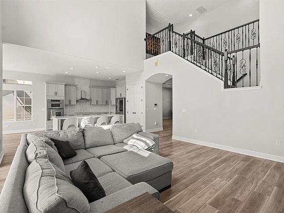 High ceilingsTranquil water viewsExpansive kitchenSerene pond viewsCovered patioLush landscapingStainless steel appliances