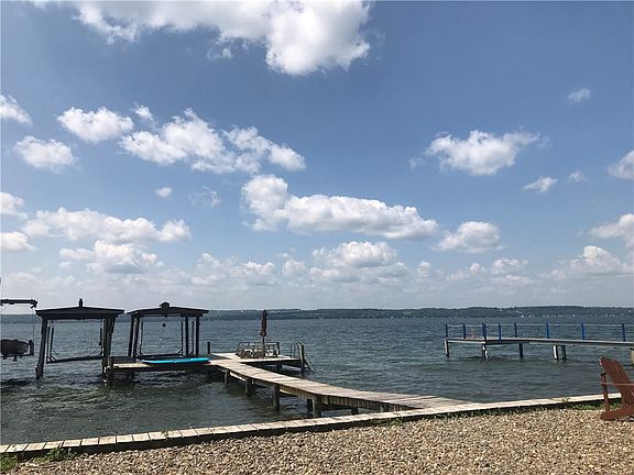 One story living on a level Seneca Lake lot. Enjoy 55ft of lake frontage with a large permanent dock and 2 boat hoists ! There is an additional building on the lake side of the road that could be used for storage or converted. Clean manufactured home is turn key today and presents a future building sight with public utilities for your future building ... nice opportunity & worth a look. New seawall is a plus. High speed internet, phone, tv by spectrum available. This property also offers a two car garage and shed for additional storage.