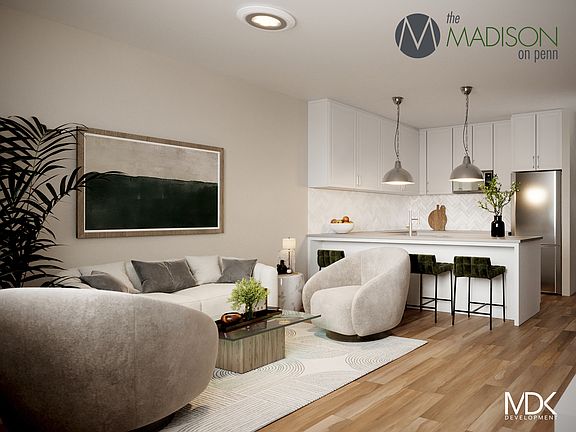 Welcome to The Madison on Penn where modern elegance meets the energy of city living! Nestled in the vibrant, dynamic neighborhoods of Bloomfield and Friendship, these brand-new apartments offer the perfect harmony of sleek sophistication and urban charm. Imagine being steps from world-class hospitals and prestigious universities while surrounded by the culture, excitement, and opportunities that make this community truly exceptional. This contemporary apartment offers a living experience like no other. With soaring 10-foot-tall ceilings and oversized windows, natural light floods your spacious living area, creating an open, inviting atmosphere that's perfect for relaxation and entertaining. Head into the well-appointed bedroom with generous closet space, providing ample room for your wardrobe and storage needs. The modern finishes throughout exude elegance, while the chef's kitchen with stainless steel appliances is a culinary enthusiast's delight, offering both style and functionality. Whether you're enjoying your morning coffee by the expansive windows or whipping up a gourmet meal, this one-bedroom apartment is designed to cater to your every need. Welcome home to a world of comfort, sophistication, and modern living. Your perfect urban retreat awaits. 1 Bedroom, 1 Bathroom, Walk-in Closet, 696 Sqft Property is currently under construction. It will be complete December 2025.