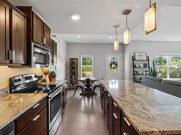 Sophisticated and bright END UNIT townhouse in a great east side location within walking distance to parks, trails and the bus line! Large picture windows throughout, allowing tons of natural light! Luxury vinyl tile runs throughout open concept main level. Rich cabinetry frame in the spacious kitchen with quartz counters and an extra-large island that overlooks the living room with electric fireplace and dining area! Upstairs you'll find a 2nd living space/loft area that can be hard to find in a townhouse. The primary bedroom has a trey ceiling, walk-in closet, and private bathroom. 2 more bedrooms upstairs, 2nd full bath, and laundry closet. Don't miss the half bath on main and attached 2 car garage, wired for electric vehicle charging!