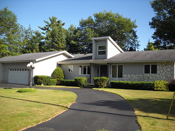 Ranch with style, 3 bed,2.5 bath, fireplace,and woodstove, deck with boardwalk, garden shed, circle drive, dead end seclusion, two 7.5 bays in living room, separate French doors to living, heated garage, generator hookup, central air.Move in year round home Oscoda MI