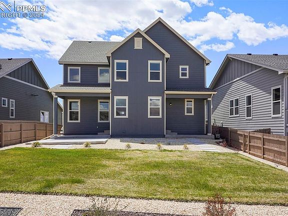 Amazing opportunity to purchase a better than new home in super desirable Cordera that is only 1 year old and is complete with all landscaping and fencing. The best of both worlds - new construction without the wait! Amazing lot on a quiet cul-de-sac that provides ample privacy and space from rear neighbors. The home backs to 7.8 acres owned by the city that will not be built on. Cordera is an idyllic community with scenic hiking/biking trails throughout, a community pool, fitness center, playground areas and many parks. The home was new in 2023 and features 6 bedrooms, 4 baths, a 3 car garage, 4 of the bedrooms are on the upper level and there is a bedroom and bathroom on the main level as well as the lower level. Great room with towering two story vaulted ceilings, stylish luxury vinyl plank floors, an abundance of large windows for maximum natural lighting and open to the kitchen which is great for entertaining. The kitchen has slab granite counters, an island with pendant lighting, a natural gas cook-top, stainless appliances, a pantry, chevron patterned tiled backsplash, under cabinet and over-sized cabinetry. Spacious primary suite with a 4 piece bath, walk-in closer and overlooking the city owned land which provides scenic views. The 4 piece bath has granite slab counters, double vanity, over-sized shower with seat. New landscaping, sprinkler system and fencing completed in 2023. Mountain views from the upper level. Amazing access to the amenities of Powers, Black Forest Regional Park and great highway access.