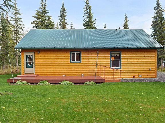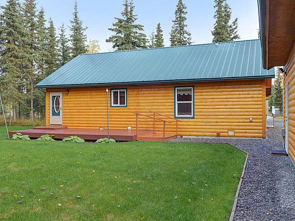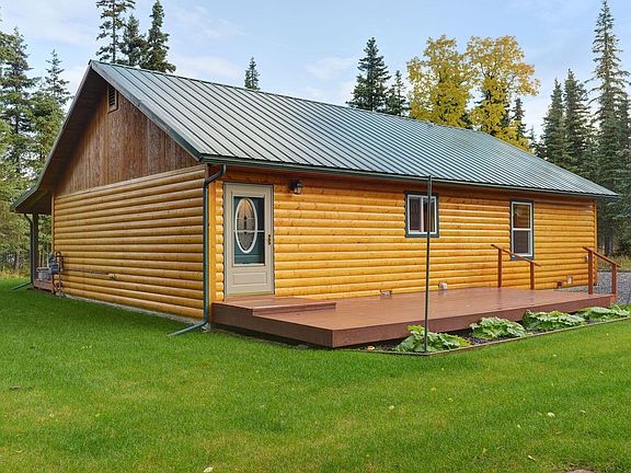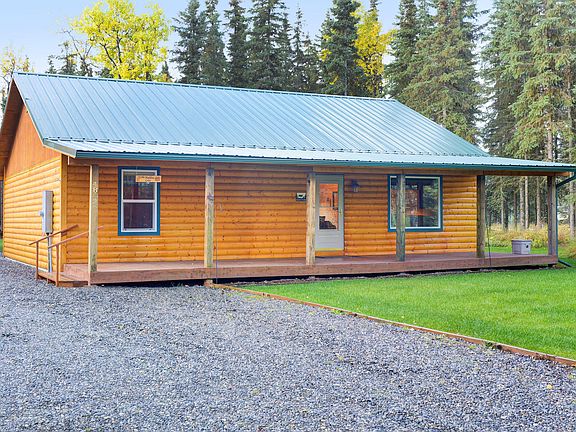 Cute cabin style home on just over an acre lot! The house was built in 2008 and features 2 beds, 2 baths, and almost 1,200 sqft. The oversized 26x26 garage was built in 2009 and is perfect for storing all your fishing/alaskan toys. This property is in spectacular shape w/ all maintenance completed, there is a beautifully maintained flat yard surrounded by trees for privacy, complete w/fire pit.There is a very nice water softener system in the crawlspace, along with lots of extra storage. House and garage were just stained/painted this summer, so wont need to be done again for a few years. Furniture is negotiable as it fits with the house theme and is in great condition.