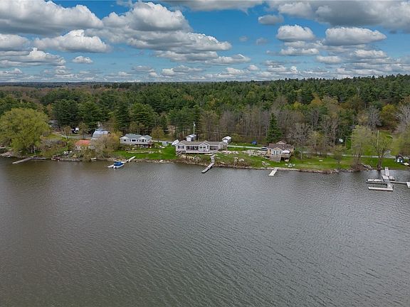 This is an amazing seasonal waterfront cottage with beautiful sunsets and great views of the Main Channel of the St Lawrence Seaway. This newly constructed 3 bedroom, 2 bath home is approximately 1166 sq ft of living space. Large open floor plan. Adorable kitchen. Wood stove for cozy cool evenings. An abundance of windows overlooking the bay. Plank wood flooring and cathedral ceilings. There is approximately 141' of waterfront. Floating dock. Drilled well. Located on a year round road. The property runs both sides of the road. 2 single car garages and a storage shed. Property is closed to the Town of Alexandria boat launch. Most furnishings will stay. Heat source is Hydro Electric. Owner working on list of what will not stay. This will not last long. Even though it is sold, we wanted to still show you the beautiful cottage this is.