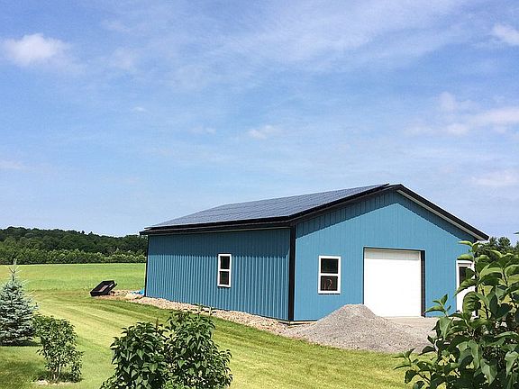 1 story, 3 BR, 2 Bath, cathedral ceilings, f/f laundry and 3 car attached garage on scenic 1.35 acres setting.Geothermal heating and cooling. Solar panels on barn.