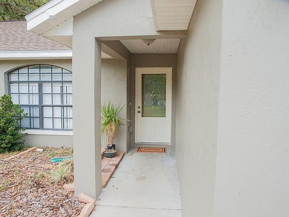 Clean and updated 3 bedroom, 2 bath, 2 car garage home in a great Zephyrhills neighborhood. Gorgeous pool and huge screened lanai with brick pavers, and plenty of room in your fenced back yard for outdoor entertaining. Interior of home has been freshly painted and carpeted, and also includes newer wood laminate flooring, ceiling fans, and large living area. Kitchen is appointed with light wood cabinetry and lots of counter space. Architectural detailing on exterior and interior include decorative arched windows and doorways, roof pitches and gables, vaulted ceilings, and plant shelves and niches. New roof in 2014. New exterior paint 2014. New privacy fence 2017, New carpet, and newly remodeled master bathroom.