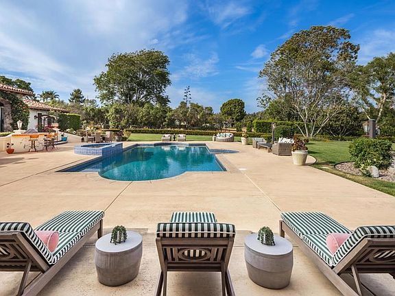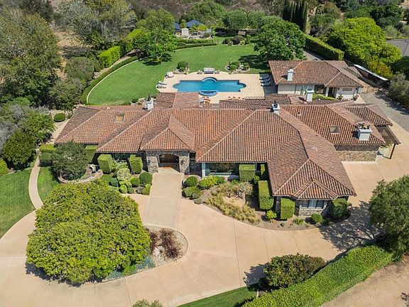 This is where peace begins. Tucked away at the end of a cul-de-sac in Rancho Santa Fe’s prestigious West Covenant, you’re in your own world here. The gated entrance opens to a sweeping circular driveway, offering privacy, prestige, and plenty of space for guests. It's the perfect first impression and a promise of what’s to come. One of the best streets in Rancho Santa Fe! A spacious backyard covered in lush green grass is perfect for outdoor fun. The possibilities here are endless. Close to Encinitas, and the I-5. Experience Rancho Santa Fe’s, Pedazo De Cielo (“Piece of Heaven”) a rare, single-level gated estate that masterfully combines luxury, space and soul-stirring natural beauty. Situated on over two usable acres adjacent to equestrian trails, this meticulously designed hacienda-style compound by architect Alex Friehauf offers the perfect blend of timeless charm and modern comfort. Step inside the main residence and discover 5,900 square feet of refined living space, where rich travertine tile, wide plank European Oak floors, wood-beamed ceilings, skylights, and multiple fireplaces create a warm, elevated ambiance. The well-thought-out floor plan features four spacious ensuite bedrooms, including a secluded primary suite with a bonus room ideal for a gym, nursery, or creative space. A dedicated office and multiple light-filled living areas ensure both productivity and relaxation. At the heart of the home is a gourmet kitchen which flows into the expansive great room featuring a built-in bar that is perfect for entertaining or simply enjoying everyday moments. Each room either opens to the serene outdoors or has views though the windows, where lush landscaping, mature Jacaranda trees, vibrant roses, and easterly views provide a daily escape into nature. The detached over 1100 sq ft guest house offers 2 bedrooms, 1.5 baths, a charming California Room with an outdoor fireplace, a hand-painted mural, and a sense of retreat ideal for guests, extended family, or a private studio. Outdoors, this estate truly shines. Lounge by the saltwater, solar-heated pool and spa, host gatherings under the stars in the outdoor BBQ area (complete with sink and refrigerator), or sip coffee on the patio while hot air balloons drift overhead. Explore the fruit orchard with 50+ varieties of trees or tend to the fenced garden beds - a paradise for nature lovers. This property is engineered for effortless living with owned solar (18.55 kW), a 20kW backup generator, smart irrigation, whole-house water filtration, a 50 AMP RV hookup, and a 3-car garage with epoxy flooring, high doors, and custom built-ins. Both the main and guest residences are single level with no interior steps, ensuring accessibility and comfort for all. Ideally located just minutes from Encinitas, the beaches, Interstate 5, Rancho Santa Fe Village, top-rated Roger Rowe K–8, and the RSF Country Club, Pedazo De Cielo offers the rare opportunity to own a legacy estate in one of Southern California’s most prestigious communities. This home is more than a residence - it’s a lifestyle. Come experience it for yourself.