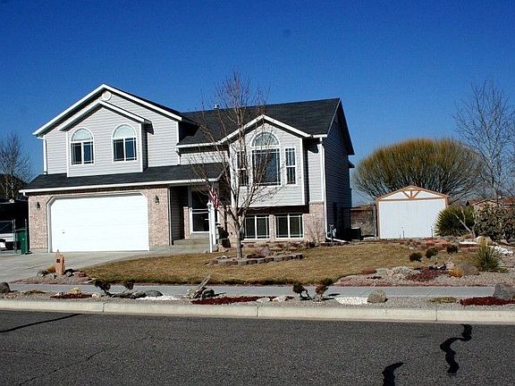 Absolute dollhouse!! Immaculate! Kitchen updates include expanded cabinetry with crown molding, & bar, Travertine tile, new microwave, warm comfortable family room with Georgia Pecan laminate floor, vaults, master bedroom with crown molding, full master bath, bedrooms have window seats for extra storage, large basement family room with kitchenette, outdoor sensor lights, drought resistant desert landscaping unique to Utah, 2 10x12 fully insulated sheds, Kool Breeze covered deck, 30 ft deep garage!! A MUST SEE!!