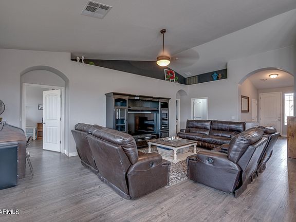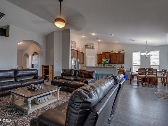Don't miss out on this beautifully maintained 4 bed, 2 bath home with a great 3 car garage. The open layout, vaulted ceilings and large windows keep the home feeling light and bright. Beautiful flooring sweeps throughout the entire home! Sit at the breakfast bar for a quick meal or gather the whole family at the dining table. Cozy up in your large living room while enjoying a movie night! Enjoy having a second fridge hookup in the laundry room. The primary bedroom features a large walk-in closet and an en-suite bathroom with double sinks shower and tub. Step outside your glass door and enjoy a morning breakfast on your covered patio or host an evening gathering around the built in fireplace with your family and friends. Watch your kids and pets play in your own backyard! the oversized side yard with a double RV gate and fenced dog run. There's nothing better than only having neighbors on one side! Your new home will back up to the community greenbelt with NO neighbors behind you! On the other side of the home you can store anything you want in the oversized shed. The 3rd garage was framed with a header so a garage door could be installed with easy access to store your toys in the backyard. Kick back and relax while enjoying a beautiful sunset in your quiet neighborhood! Enjoy the playground/park next door or the numerous community green belts! Don't wait, this beautiful home in the highly sought-after Keighley Place won't last long!