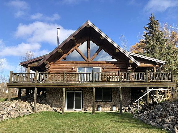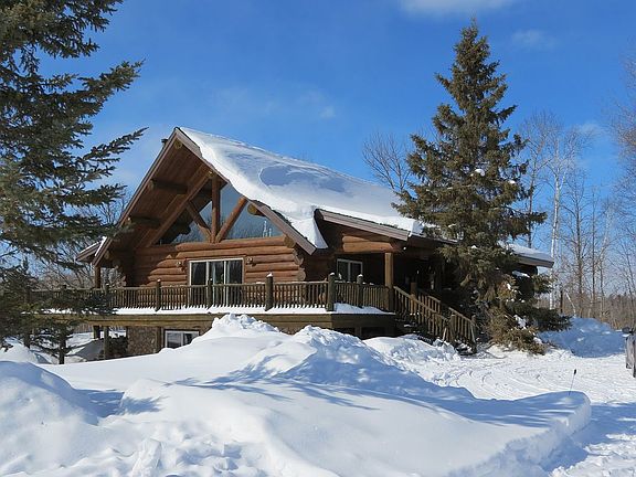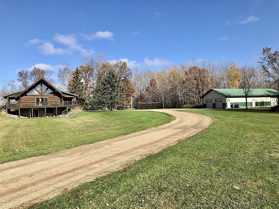 Hand crafted log home on 25 acres minutes from Bemidji. A beautiful home with 3 bedrooms and a loft and 3 bathrooms. (There is plumbing available for a bath in the loft). Warm up by the wood fireplace or enjoy your wrap around deck to view nature in every direction. 5 sets of patio doors throughout the home. New shingles in 2017. Garage space includes heated shop. Enjoy the volleyball court, fenced garden, firepit and an outside sauna!! Call for your tour today.
